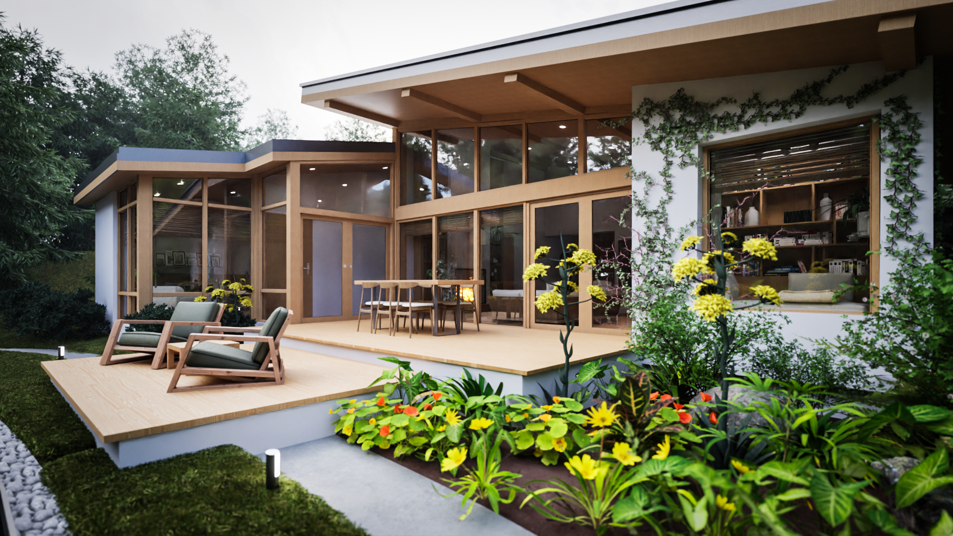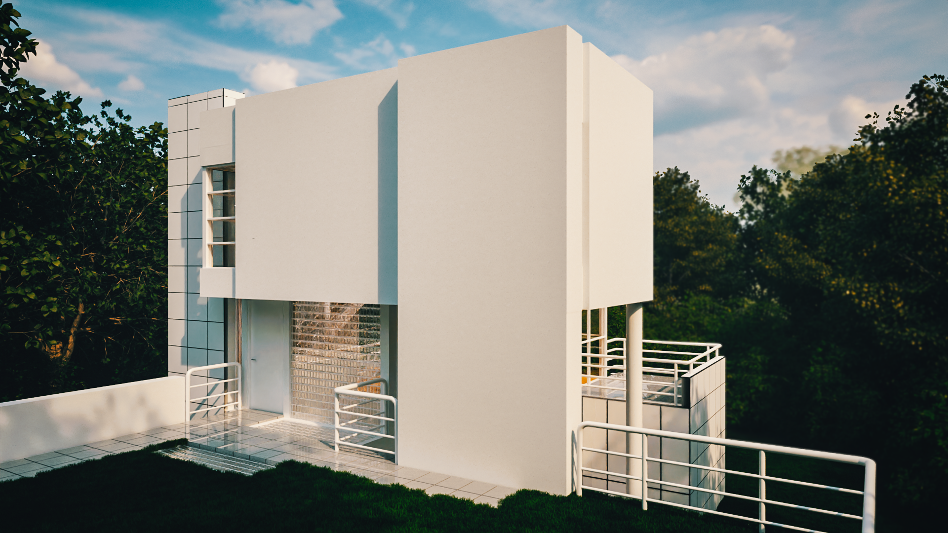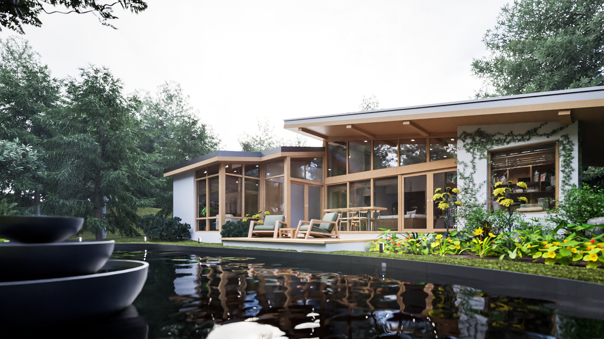 The architectural form and spatial layout were modeled in Cinema 4D, where I carefully constructed the house design. To enhance realism and atmosphere, I exported the model into Twinmotion, adding the landscape and pond elements. The final render emphasizes both the architectural clarity and the immersive quality of the natural setting, showcasing a balance of design vision, technical precision, and artistic visualization.